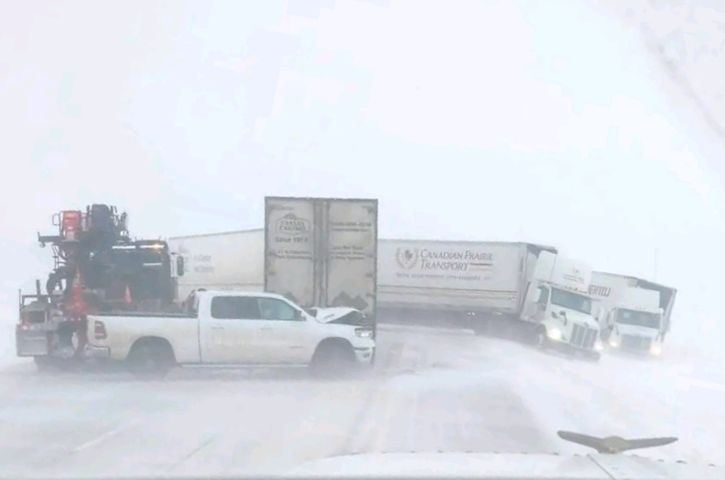 Blowing snow and deteriorating visibility contributed to dangerous travel conditions Thursday, forcing the closure of the Trans-Canada Highway just east of Brandon following a series of serious collisions. The incidents occurred during a blowing snow advisory that swept across parts of western Manitoba, creating near whiteout conditions in open areas along the highway corridor. Emergency crews responded to multiple crashes in the area as visibility dropped and vehicles struggled to navigate icy pavement and drifting snow. The highway was closed at 5:54 p.m. Traffic was halted for a time while first responders worked to assess injuries, clear damaged vehicles, and restore safe driving conditions along the busy route. Photos shared on social media showed several vehicles involved in the collisions and emergency responders working amid blowing snow along the roadside. Witnesses described chaotic conditions on the highway, with drivers suddenly encountering extremely poor visibility and rapidly slowing traffic. Authorities urged motorists to avoid unnecessary travel during the advisory and reminded drivers that blowing snow can create sudden whiteout conditions, particularly on exposed stretches of highway common across western Manitoba. The Trans Canada Highway was later reopened at 9:45 p.m. once emergency crews completed their work and conditions improved, though officials continued to warn drivers to proceed cautiously as winter weather persisted across the region.